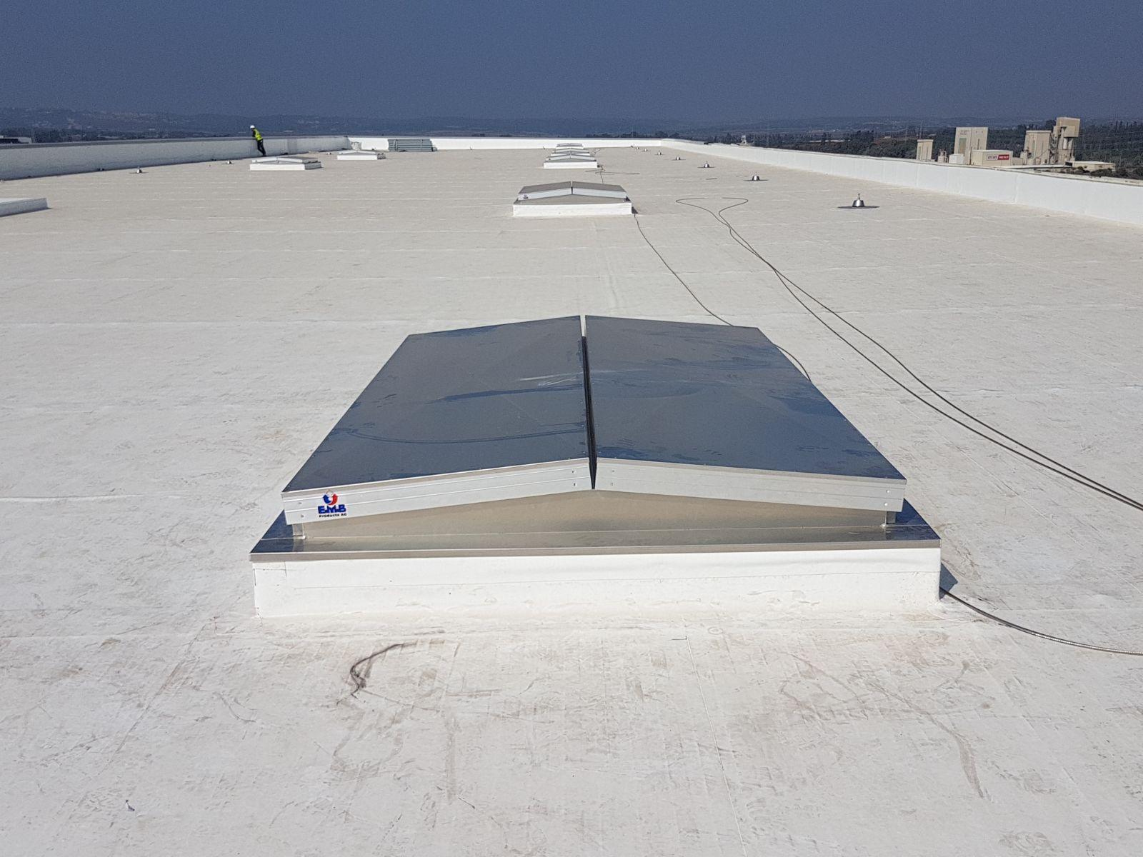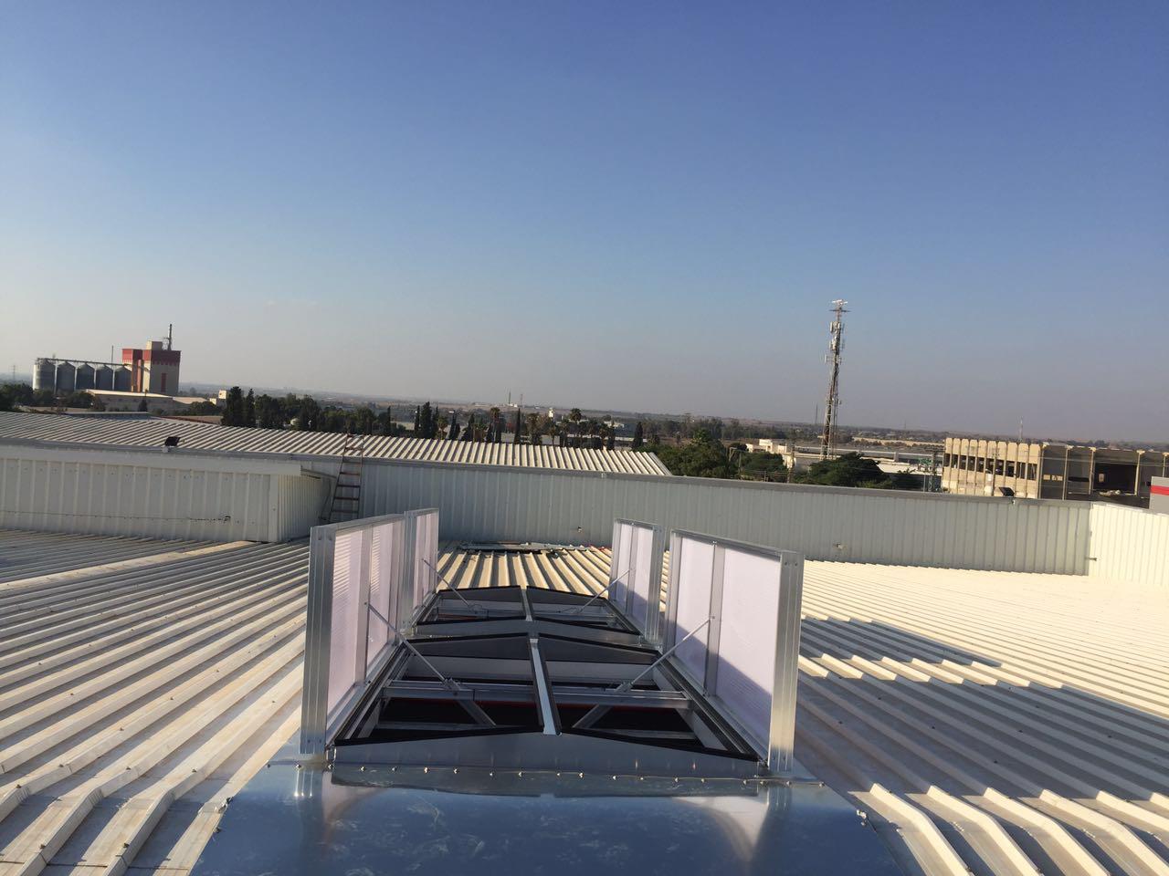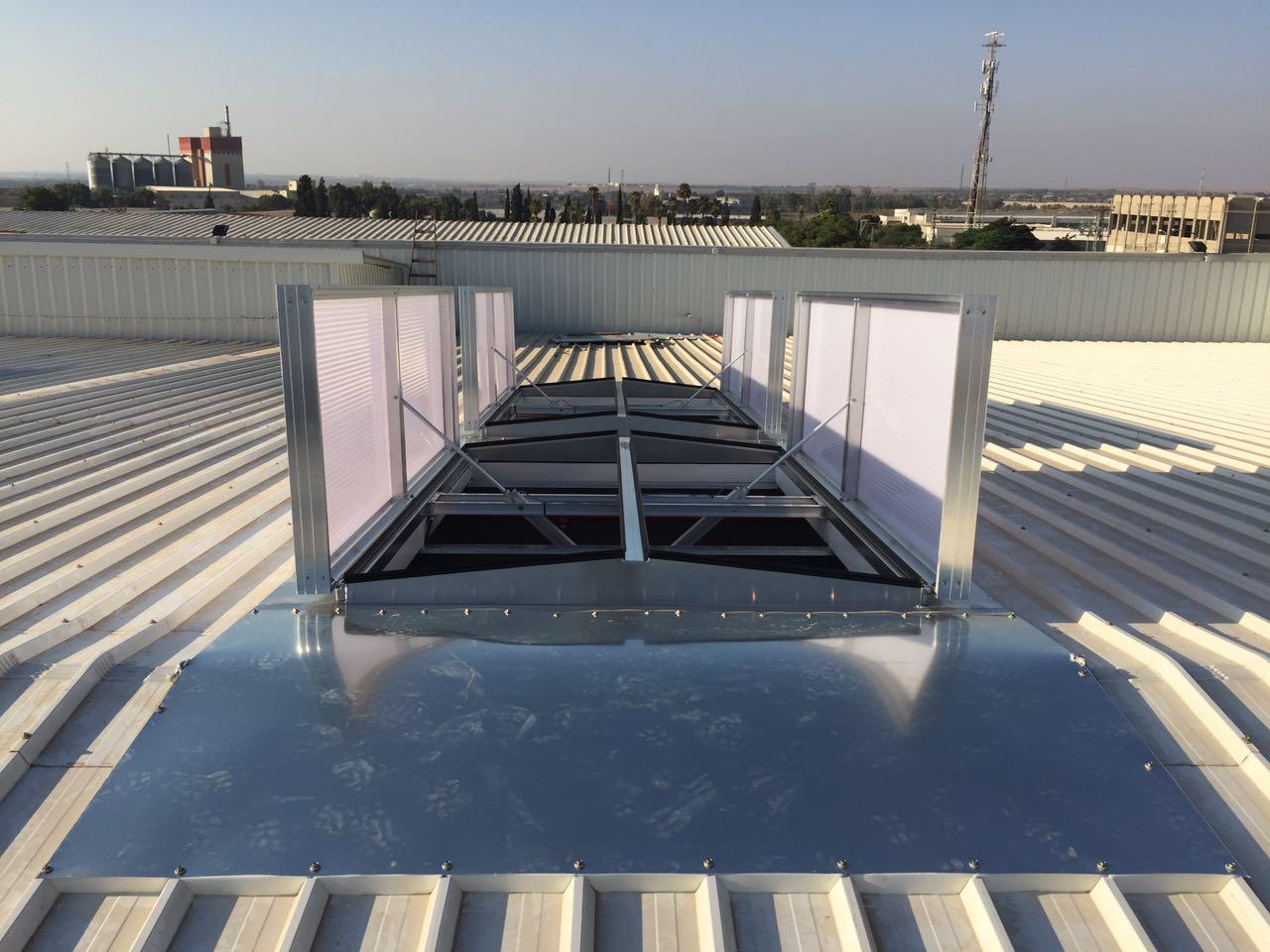 מערכת שחרור עשן טבעית באמצעות חלונות גג דו־כנפיים מהווה פתרון יעיל, פשוט ואמין לפינוי עשן במבנים בעלי גג פתוח ואפשרות לאוורור טבעי. המערכת נשענת על עקרונות פיזיקליים טבעיים, ומאפשרת שמירה על תנאי בטיחות נאותים בזמן שרֵפה, ללא צורך במערכות מכניות מורכבת אין צורך במערכת גיבוי גנרטור המערכת מופעלת ע"י מערכת גיבוי מצברים לשעת חירום ל 72 שעות .