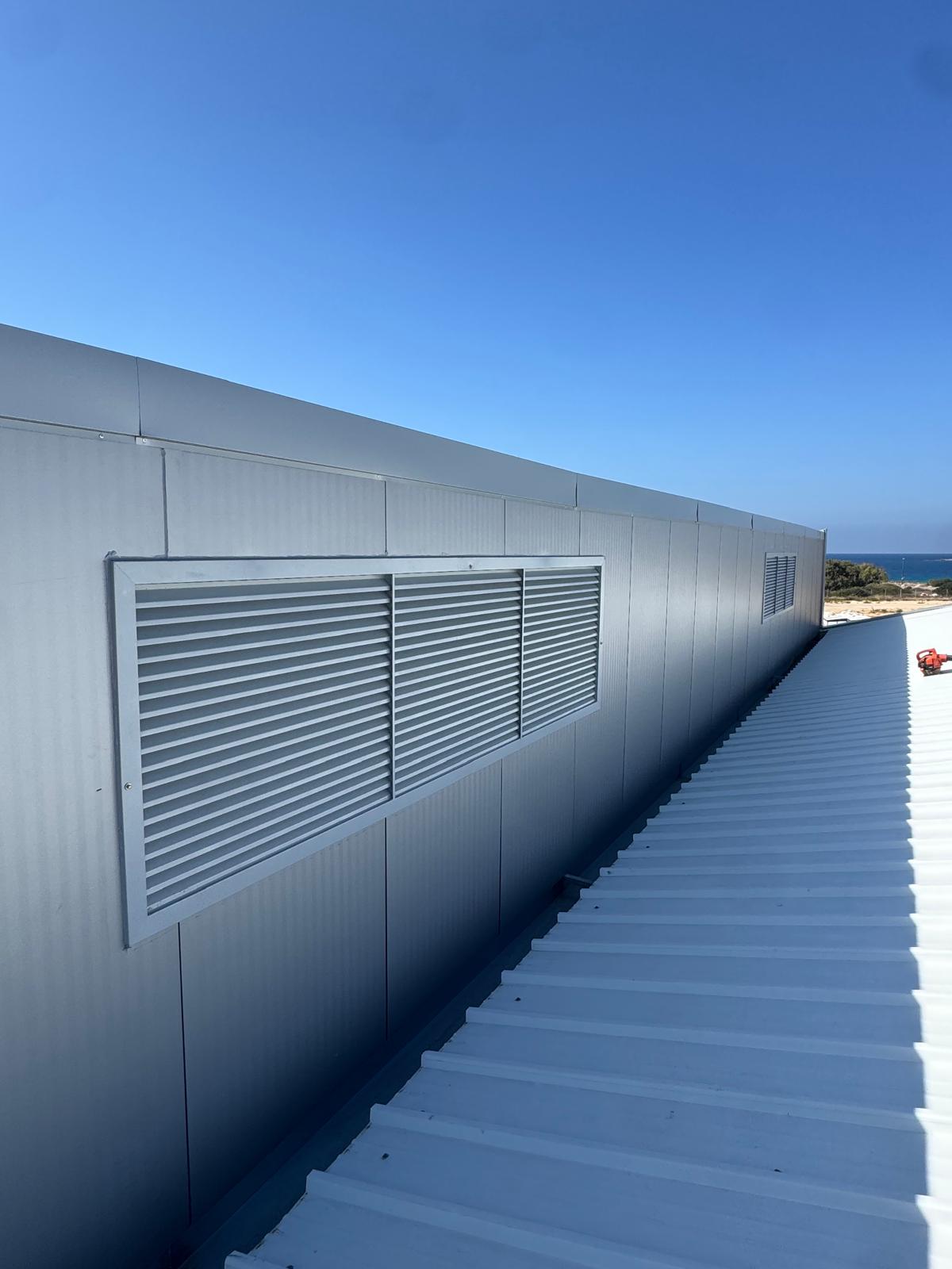 הרפפה הקבועה מיועדת לאוורור טבעי ולסיוע בשחרור עשן וחום ממבנה, כפתרון פסיבי ללא הפעלה מכנית.
